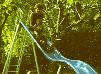 At midnight, we decided to quench our thirsts at the cafe at the top of the hill, where the jazz band had ended up. The majority of the rock and roll band had stopped, just the saxophonist remained, having joined forces with the jazz group. Some kind soul pushed a VibraSlap in my hand, and I soon found out how to play it - just hit it! The bass drummer and I set up a call and reply thing, which kept everybody's feet in time while the rest of the band decided what to play next. The lead trumpeter and the trombone player copied our example, the trombonist at one end of the room on a table, the trumpeter at the other, standing on a pinball machine. When they started playing "When the Saints..." I started playing and singing with even more vigour and enthusiasm. It was one of the few occasions in my life when I can say that I was drunk on fresh air and atmosphere. I gave the Vibra-Slap to someone else (I hope the true owner found it again) and started dancing with the crowd that had been there most of the night at the other end of the cafe.