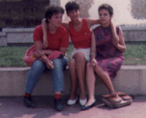 Muriel, Isabelle & Isabelle At half past twelve, I left the camp and walked to the main road towards Perpignan. I eventually got a lift and arrived at one-thirty. I was not due to meet the girls until three o'clock, so I walked around the old town, which used to be the home of the Kings of Majorca. I stayed close to the centre, however, and was sitting on a wall close to the old Palace when I met Isabelle and Muriel who had arrived early by half an hour.